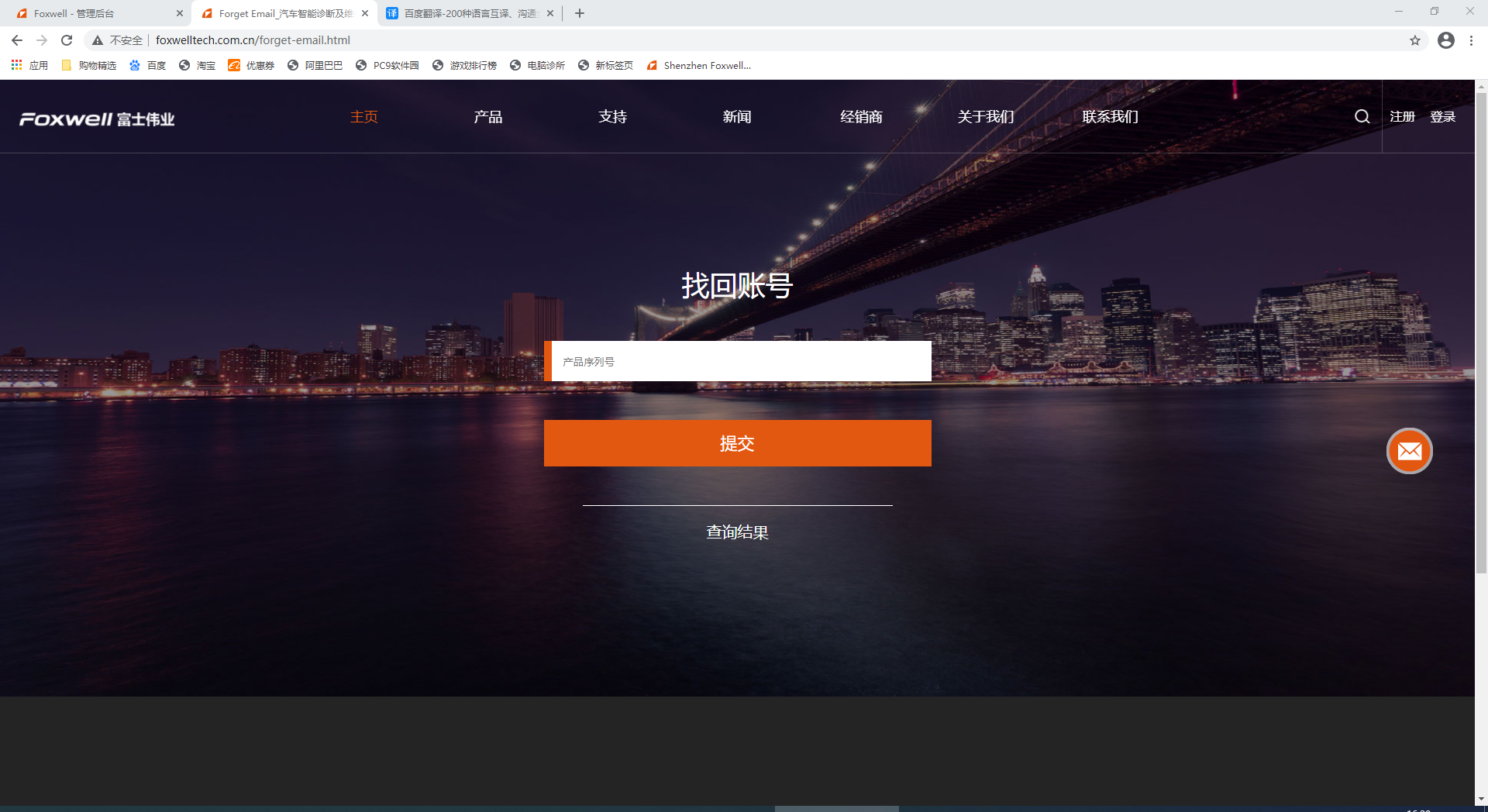 1、在富士伟业中文网站www.foxwelltech.com.cn 中,点击登陆。