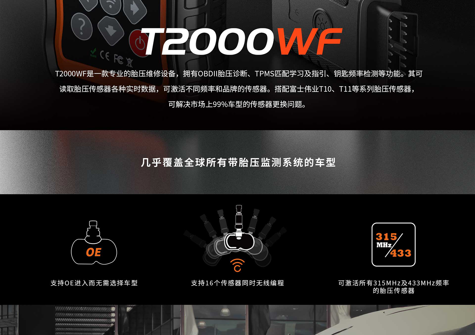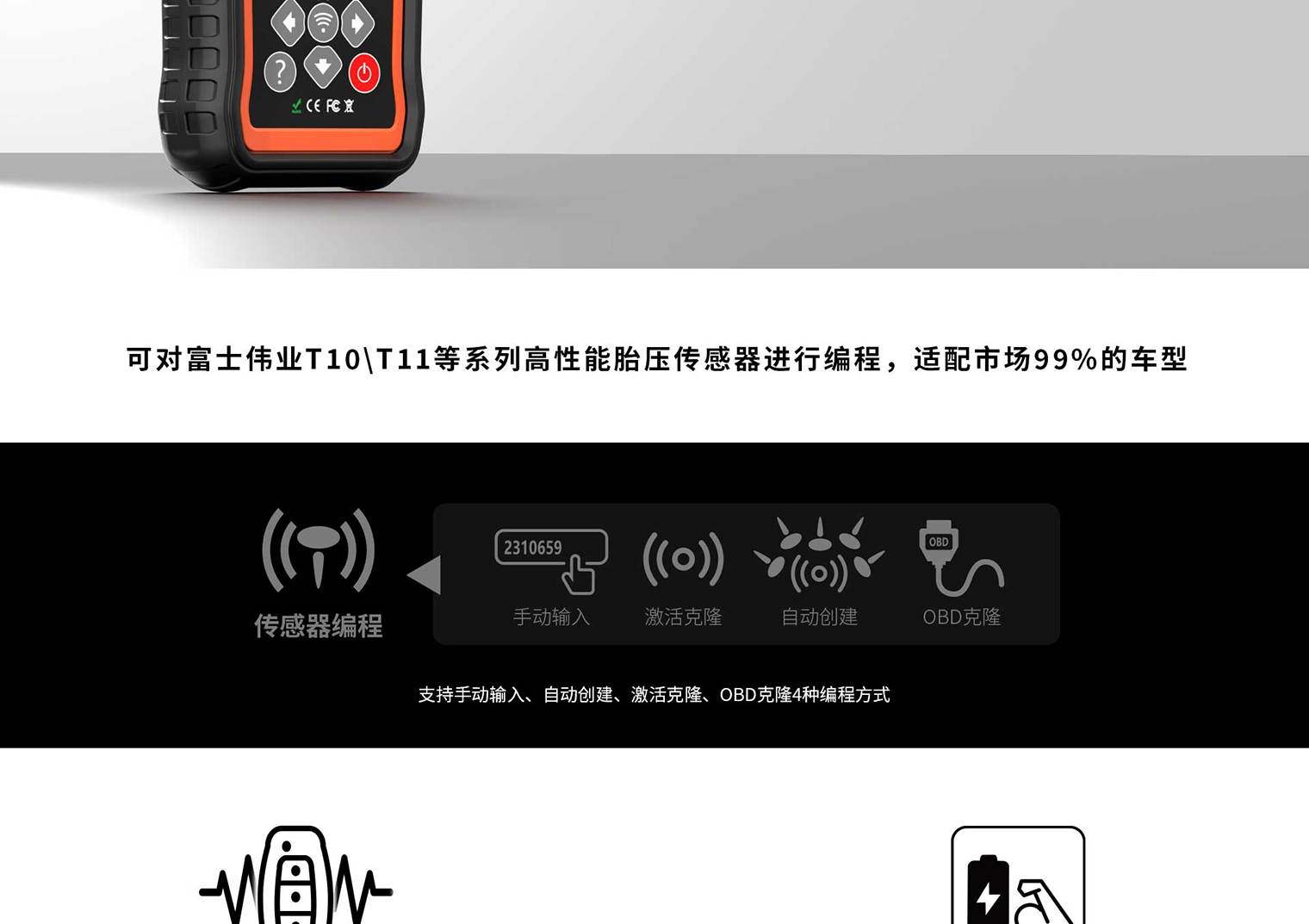 可激活所有315MHz及433MHz频率的胎压传感器;