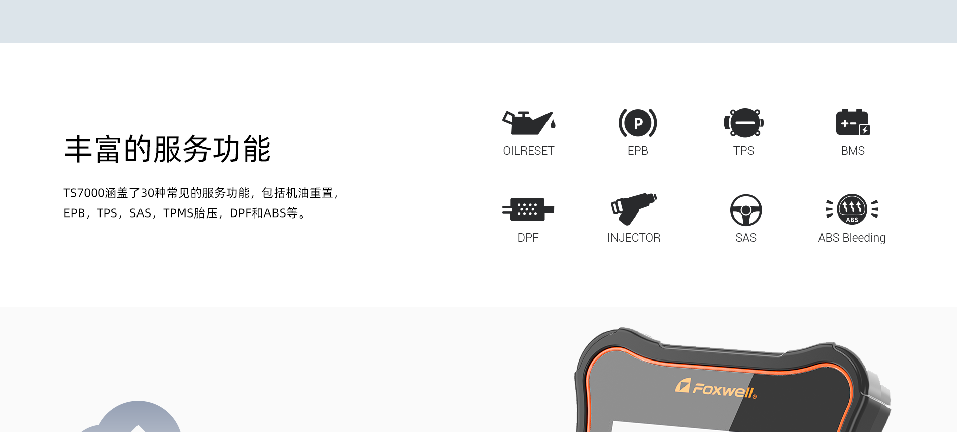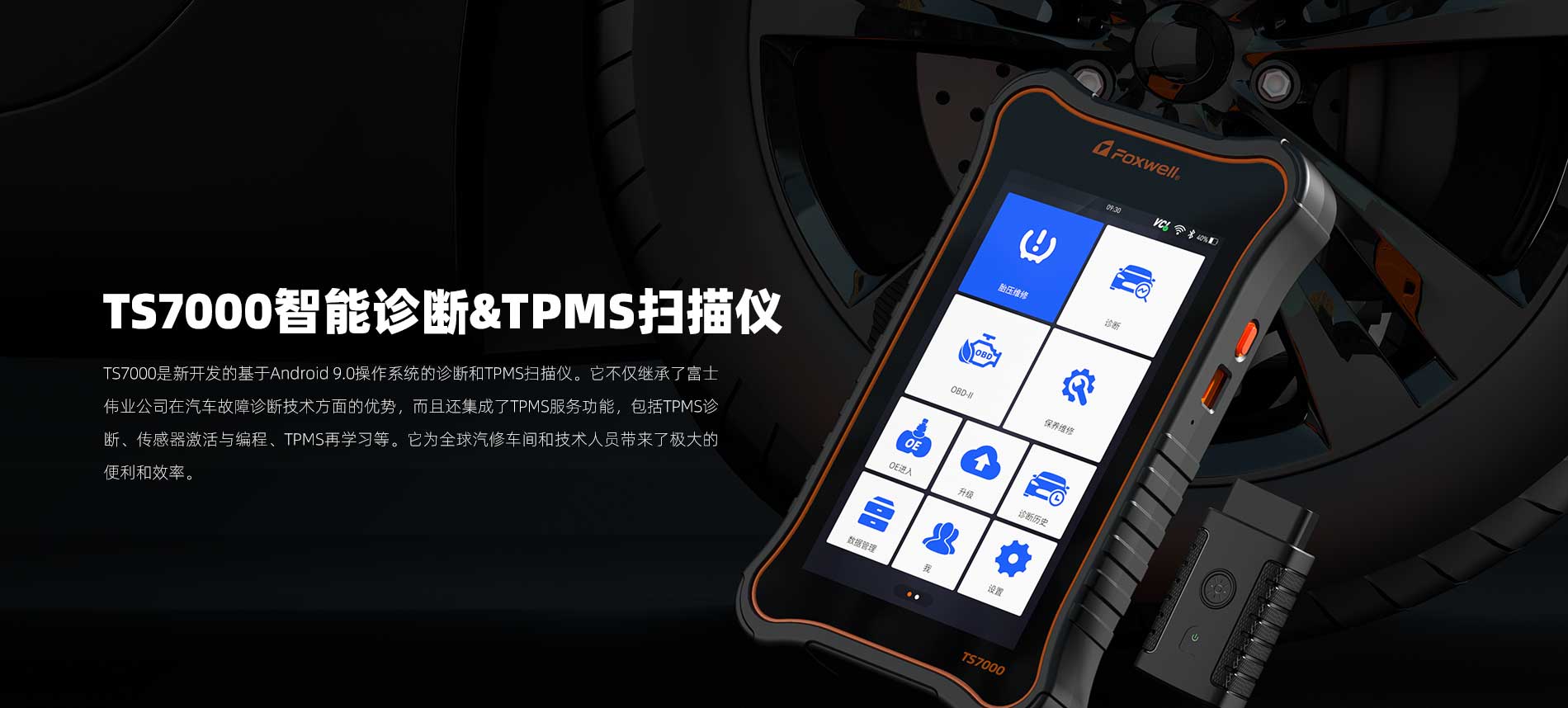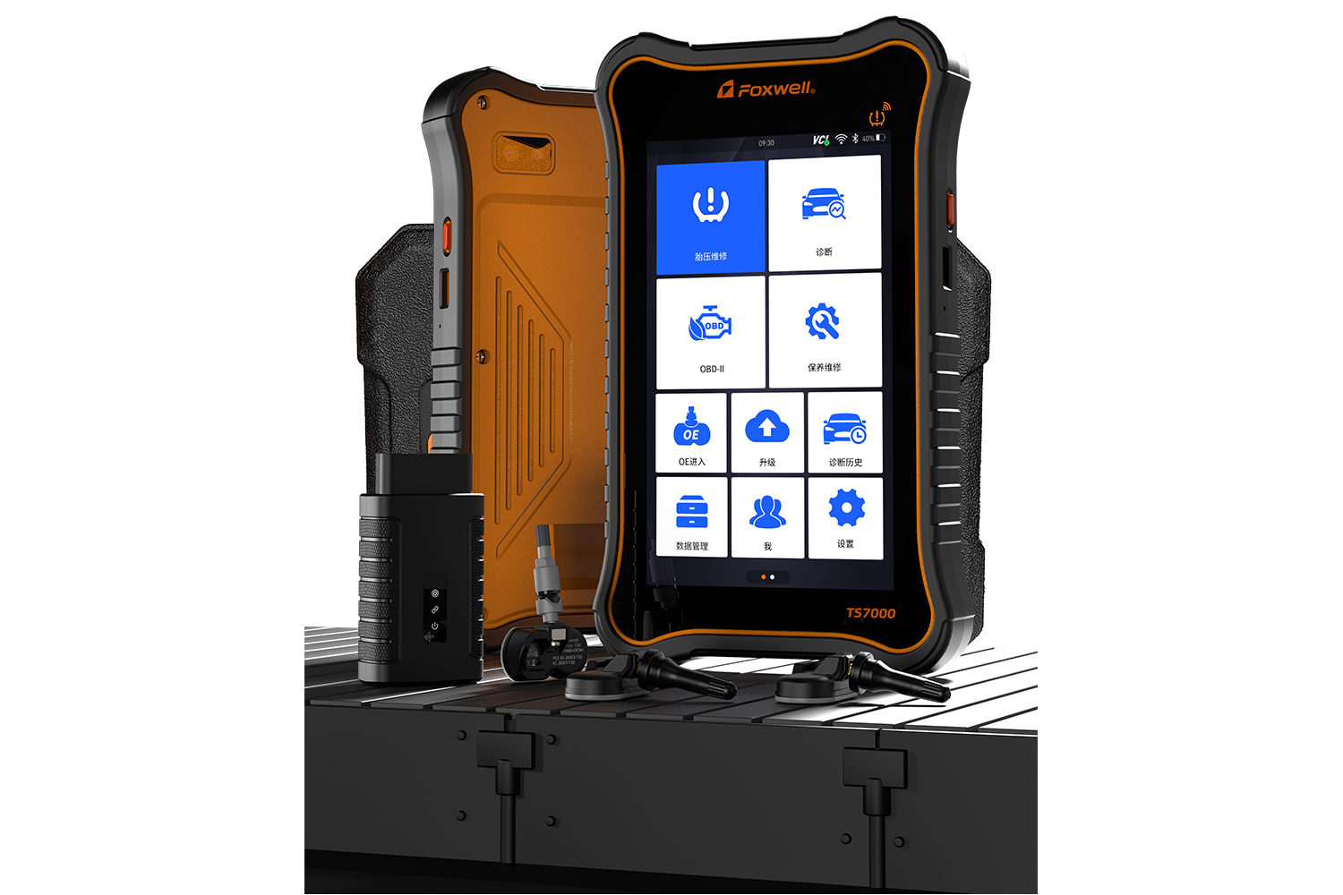 TS7000新一代汽车智能胎压维修匹配及诊断系统,是富士伟业创新开发的一款高端汽车诊断及胎压维修编程工具。它拥有胎压维修、OE 进入、轮胎改装、胎压学习、汽车诊断、维修养护、钥匙频率检测、传感器信息查询等全面功能。它不仅支持胎压系统的全面诊断维修、传感器激活编程、胎压学习功能,还配置了全车型的诊断功能以及36+特殊功能,是一款汽车维修的多面手工具。