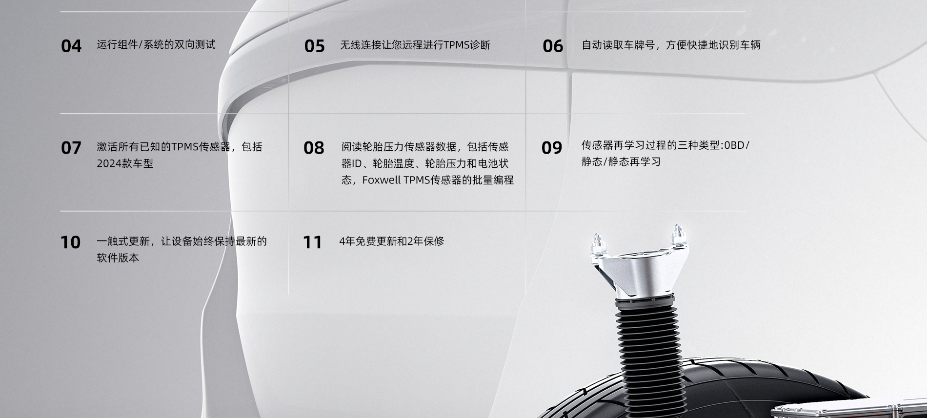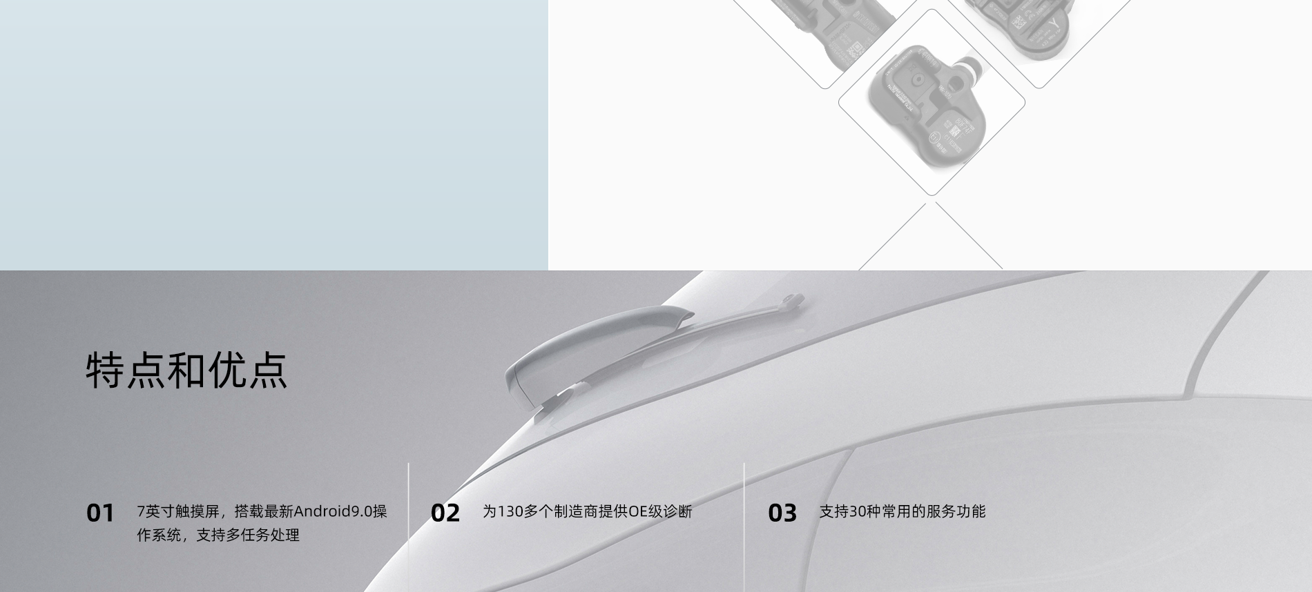 覆盖市面 99%车型的胎压诊断功能和全车系的故障诊断功能;