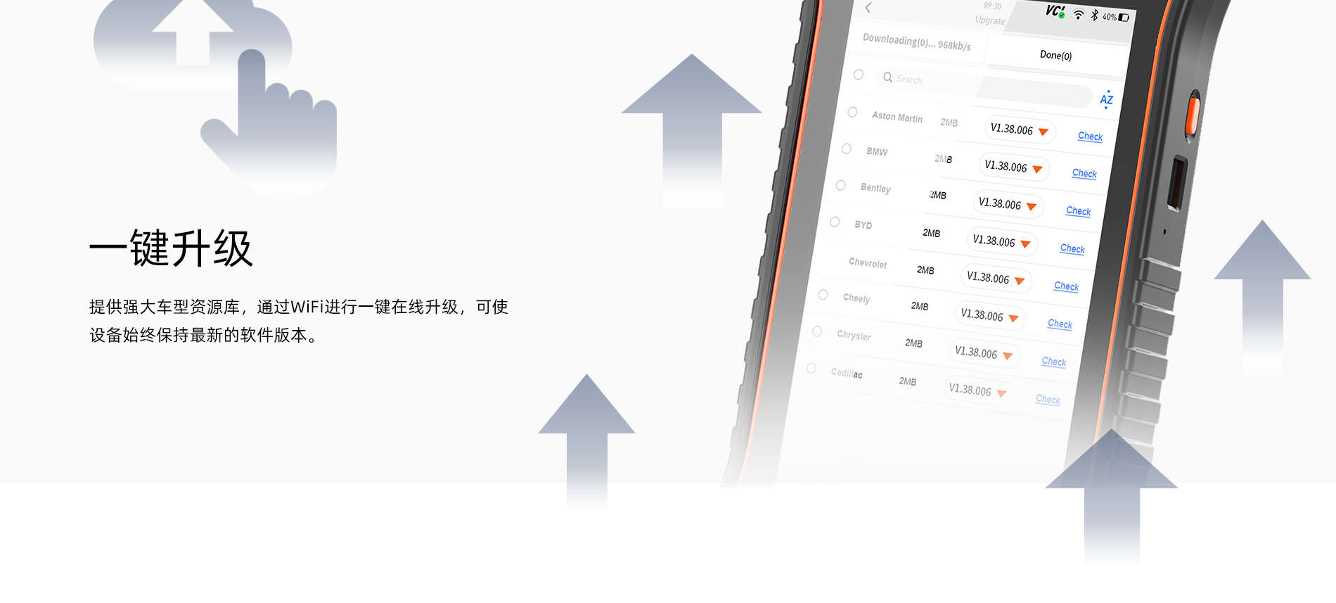 支持CANFD 或 DoIP 协议;支持Wi-fi 一键升级,一键即可升级所有的软件,快速的软件升级服务,让你常用常新;